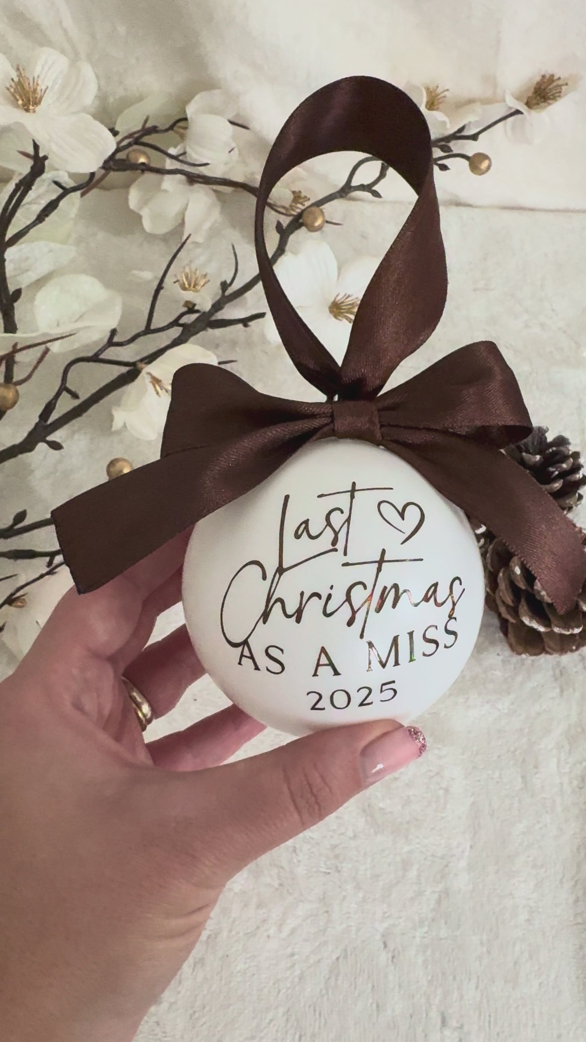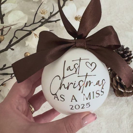Celebrate your final Christmas as a Miss in the most magical way! This beautiful keepsake bauble makes the perfect gift for brides-to-be, engagement celebrations, bridal showers, or a treat for yourself as you count down to becoming a Mrs! πβ¨